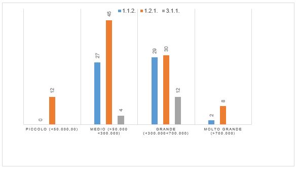 Figura 1 – Distribuzione del campione di imprese intervistate per misura del PSR e dimensioni dell’investimento in euro (in %)