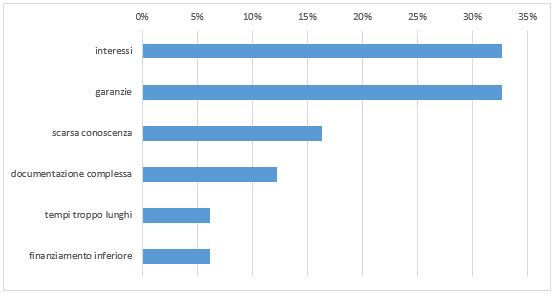 Il motivo di maggiore insoddisfazione è legato agli interessi troppo elevati e alle garanzie richieste. La scarsa conoscenza delle dinamiche e delle caratteristiche peculiari del settore agricolo è considerata un ostacolo all’erogazione di credito per circa il 16% degli intervistati (Figura 2).