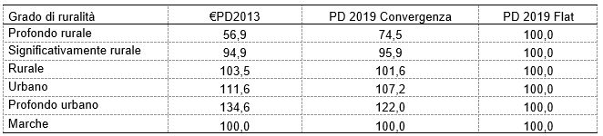 Di notevole interesse anche quanto riportato nella Tabella 2 che rappresenta gli stessi risultati della precedente ma classificando i Comuni marchigiani per grado di ruralità (1).