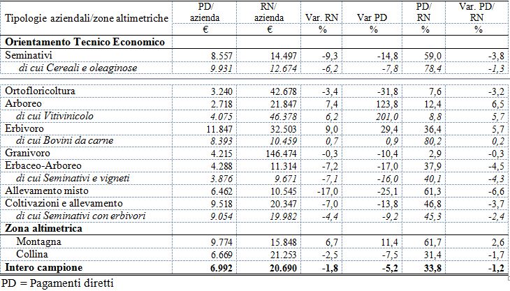 Per quanto riguarda le altre tipologie aziendali da segnalare la generale penalizzazione degli ordinamenti misti e in particolare di quelli zootecnici.